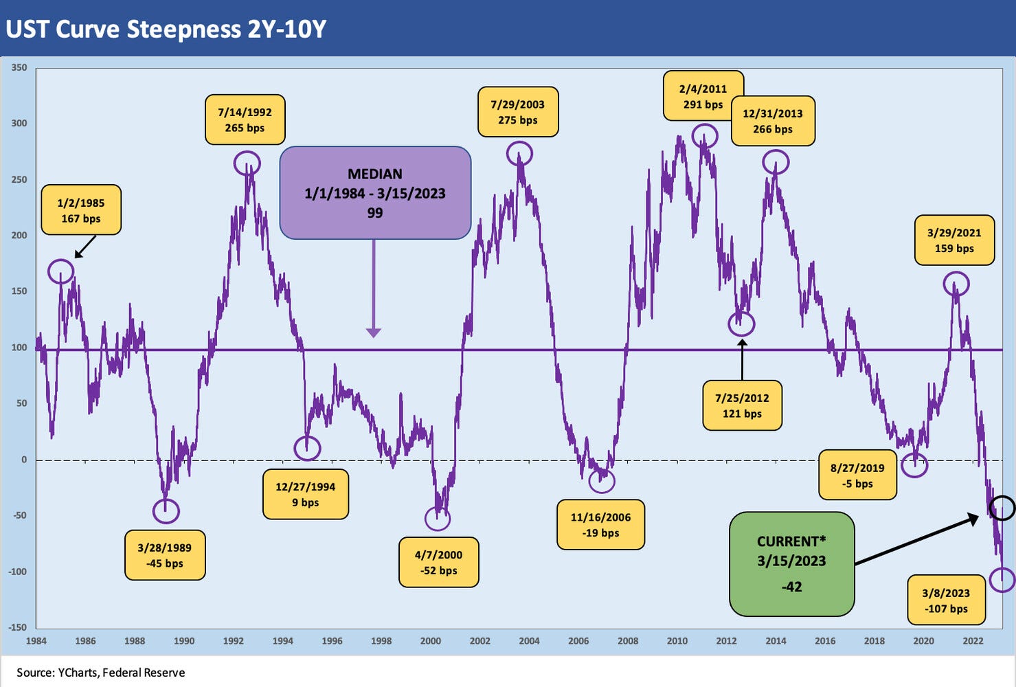 The SVB outcome helped ease the risk of a deposit panic spiral and immediately reversed much of the thinking on the UST curve. After the SVB drama, the market faced the return of CSFB back into its latest crisis stretch. The bank tried to defend its metrics but was facing the reality of a low trust factor in the markets for so many banks right now. The situation is always highly tenuous when confidence can drive counterparties to pull back credit lines (theoretical or otherwise in swaps). There are the usual concerns around prime brokerage retrenchment by clients that can hit liquidity. Most have seen this movie before.