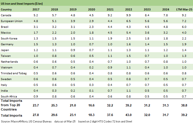 We detail some of the major steel and aluminum import numbers to highlight trade partner exposure.