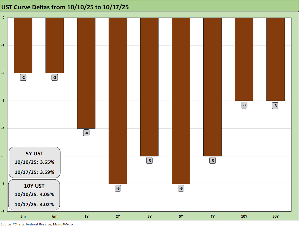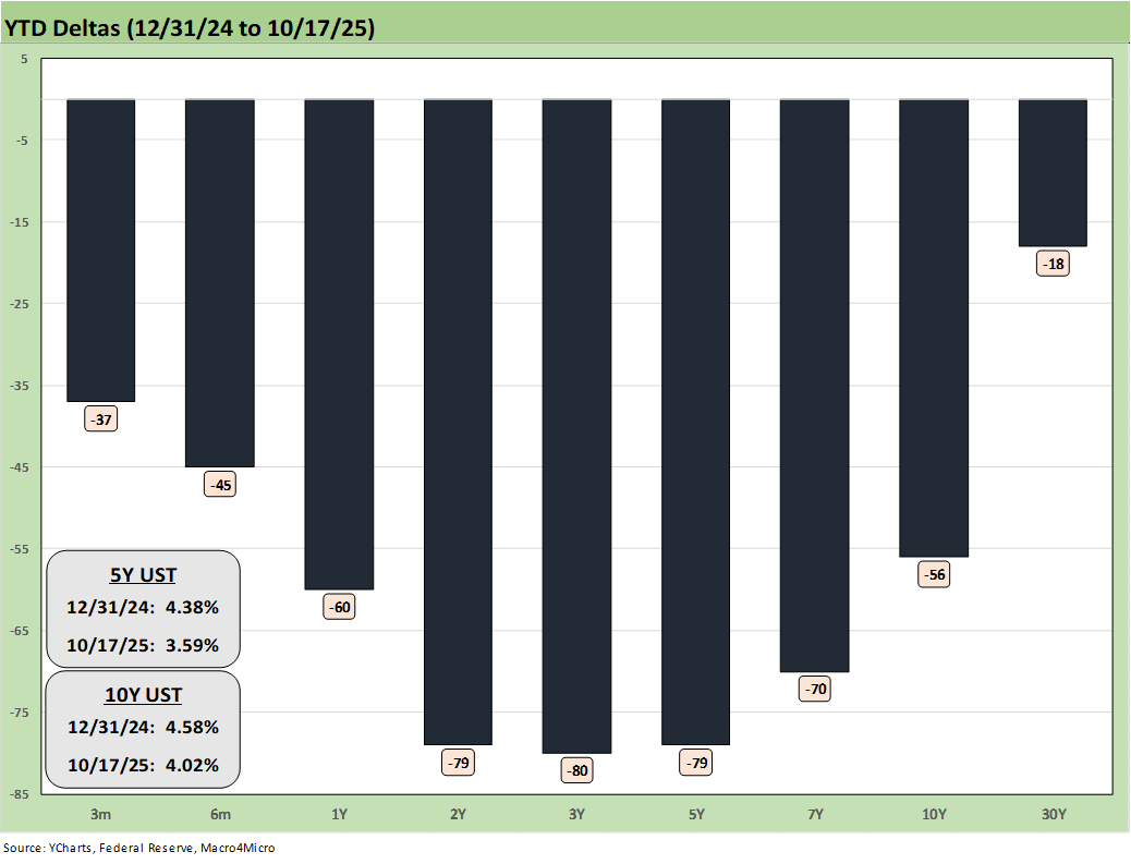 The above chart updates the YTD UST deltas. We see how the bull steepener has paid off for bond returns in YTD 2025 with the 7 bond ETFs we track all in positive return range (see Market Commentary: Asset Returns 10-19-25).