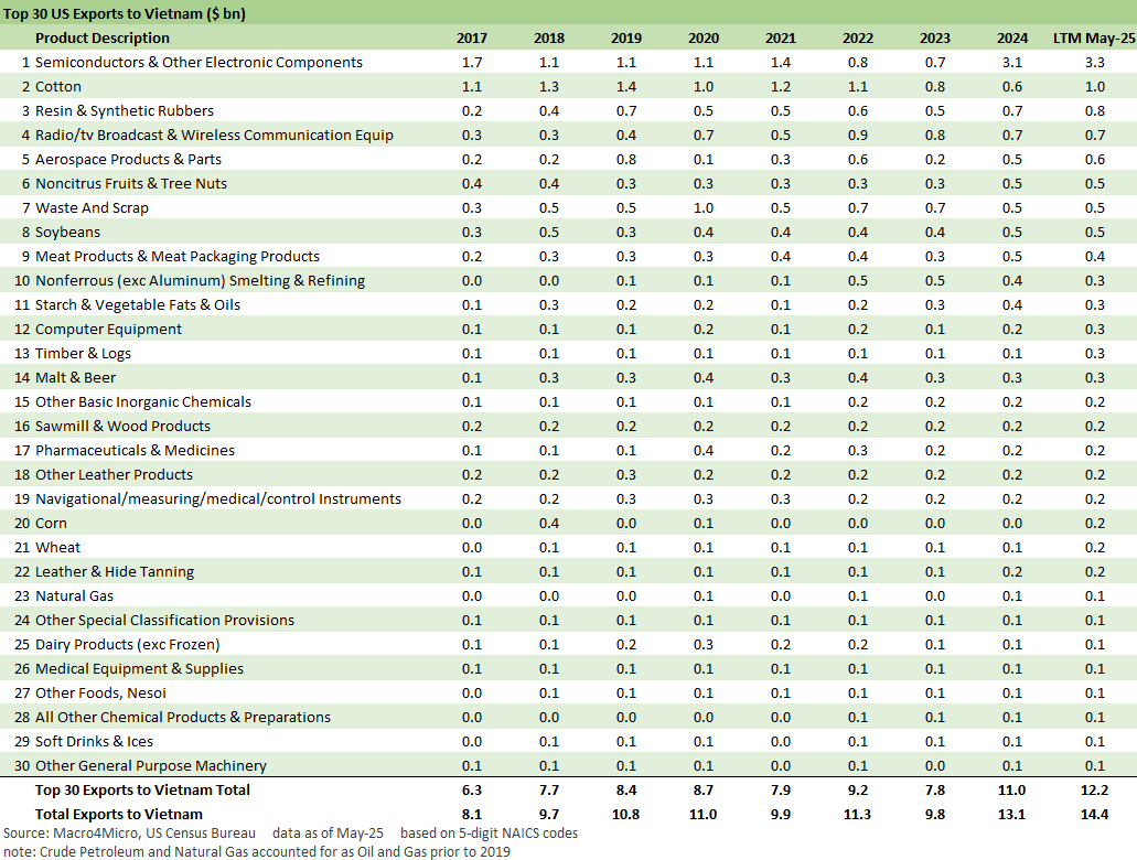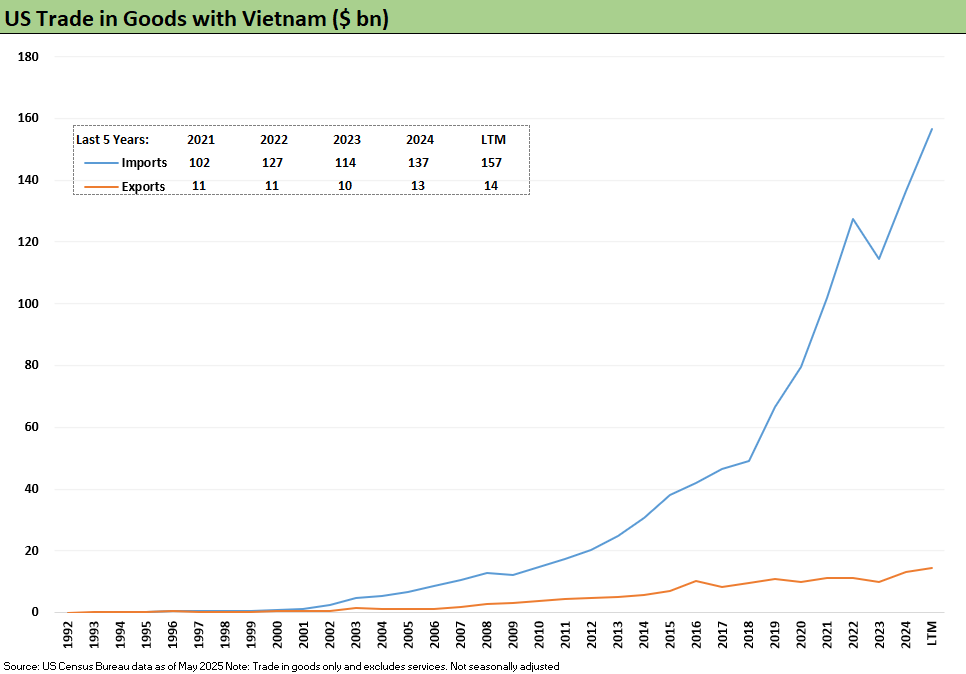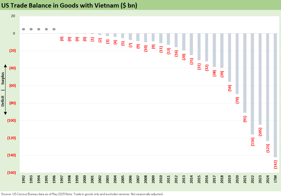 We update US-Vietnam import/export volumes and product mix as a 20% deal is struck. Vietnam offers food for thought.