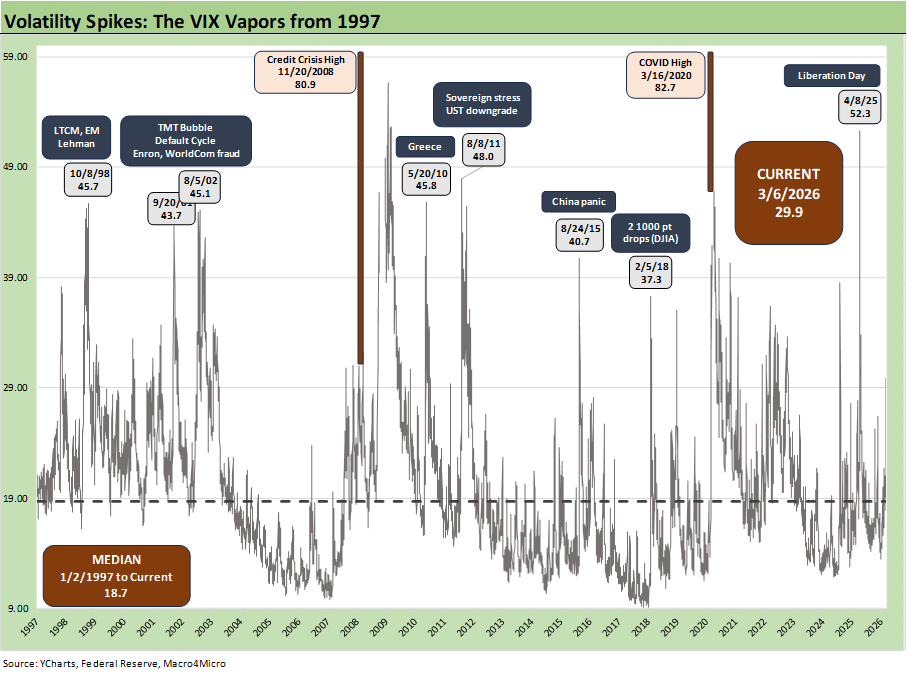 We revisit the wild ride of VIX across a period stacked with “events” from 1997. We look across the tech bubble and eventual implosions, the Greenspan hyper-easing, the Iraq War period of rising oil prices in 2003, the housing excess and related structured credit excess and mortgage pyrotechnics, the bank systemic crisis and counterparty shock that gave us bailouts and years of ZIRP, the shale boom and oil/gas binge-and-purge, the COVID pandemic and return to ZIRP, the inflation spike into a tightening cycle, and now the tariff and trade chaos alongside a fresh Middle East war between the US/Israel and their largest, most extreme enemy.